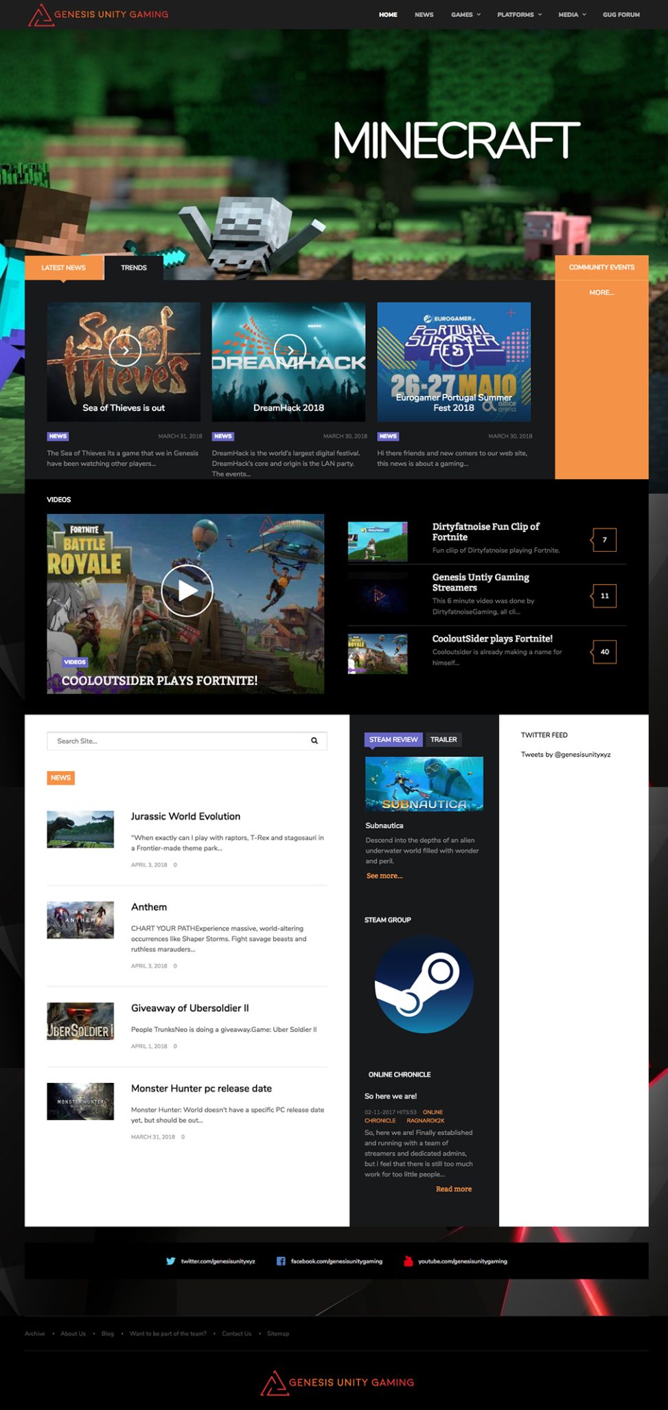 Apoio no rebranding e re-estruturação de site de Genesis Unity Gaming.