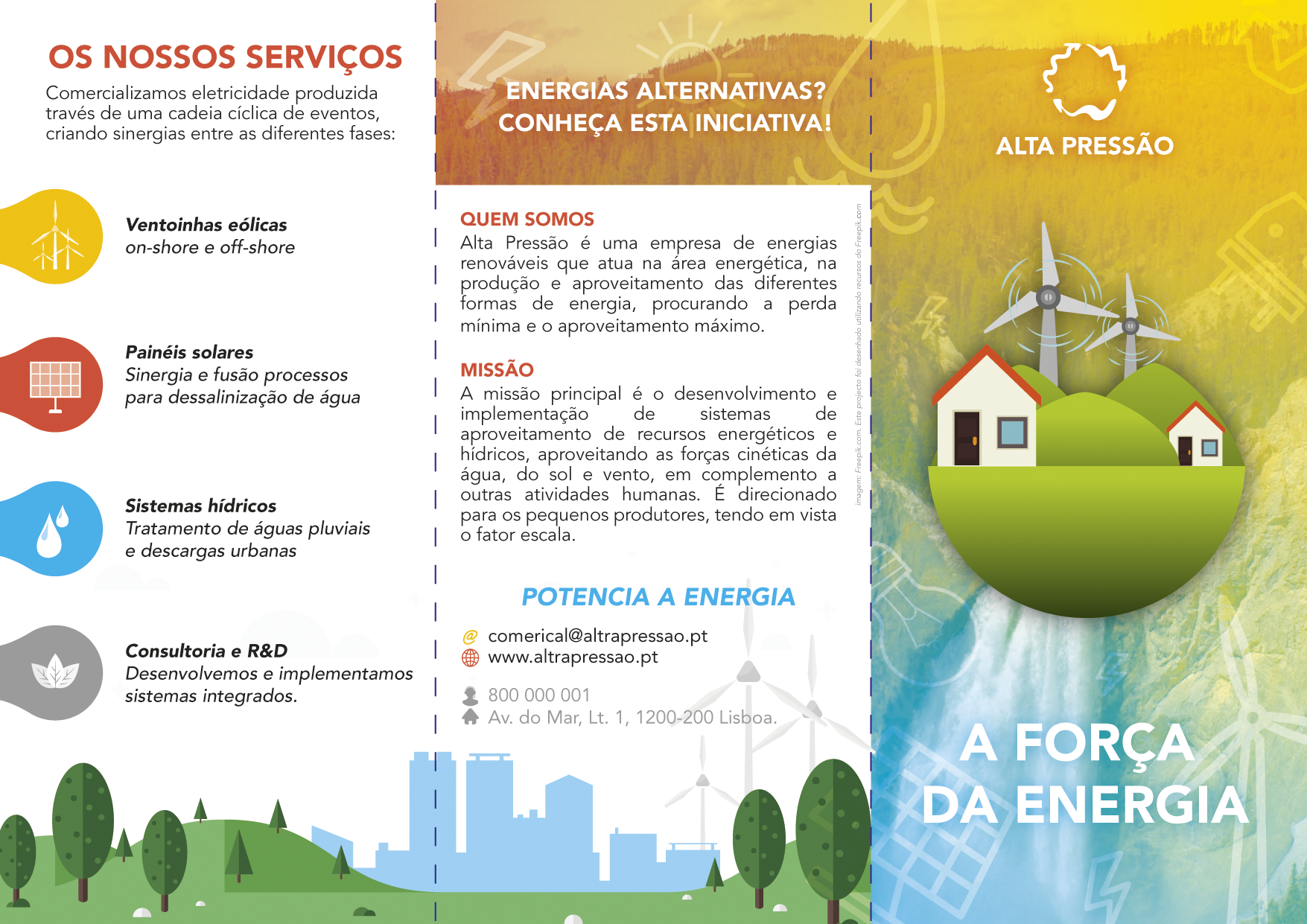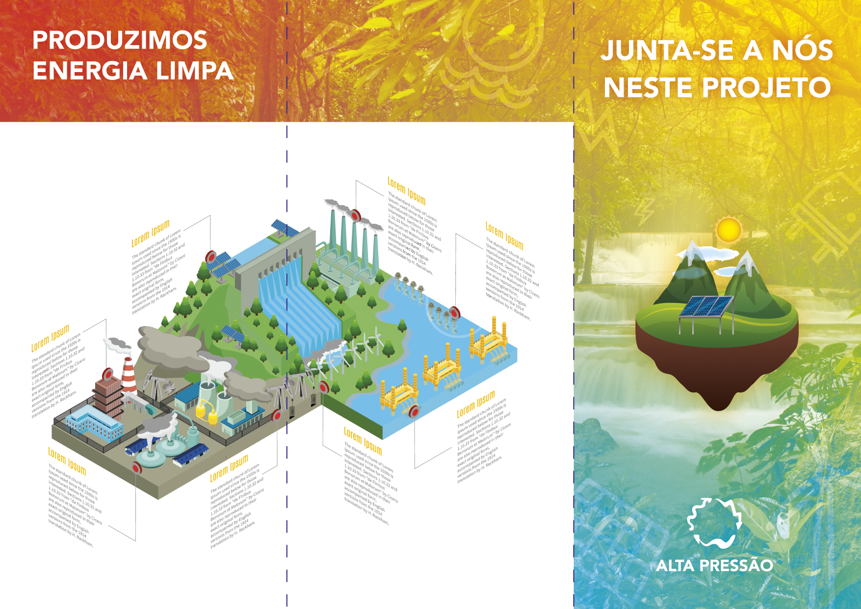 Diferentes Peças de comunicação para empresa fictícia de energias renováveis